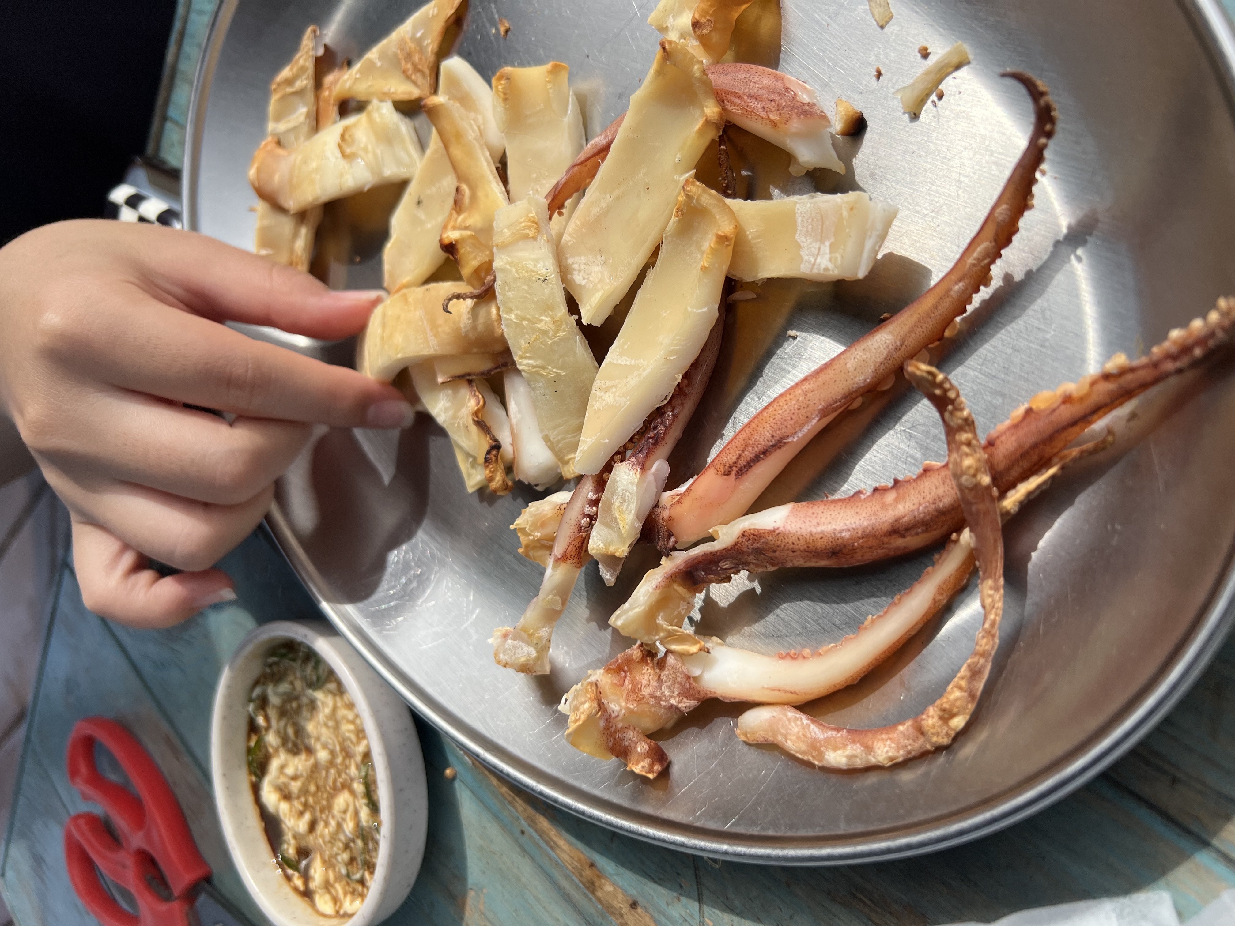 반건조 오징어를 즉석에서 구워주는 곳인데 한마리에 15,000원 정도한다.