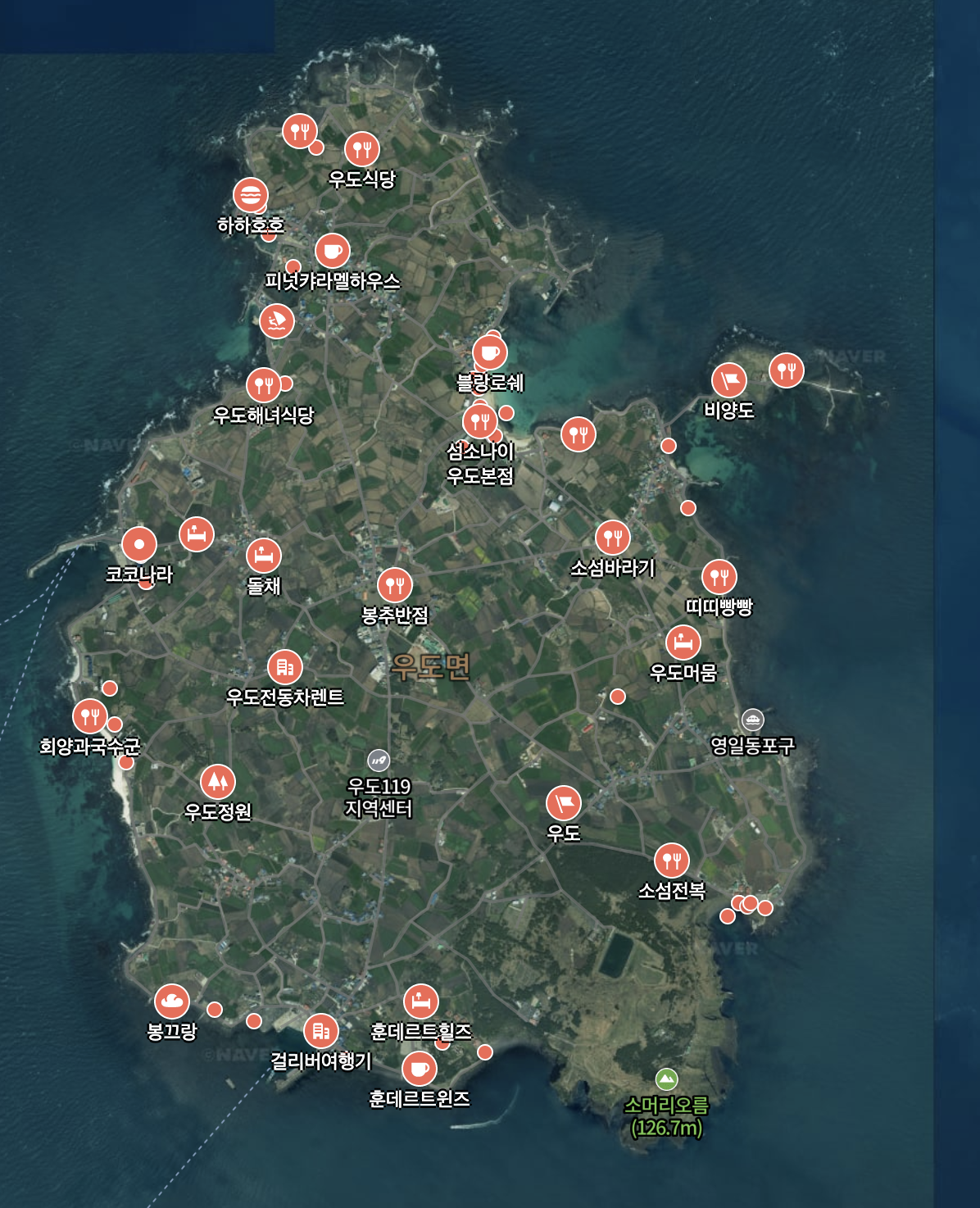 우도는 제주도의 서쪽 해안에 위치한 섬이다.