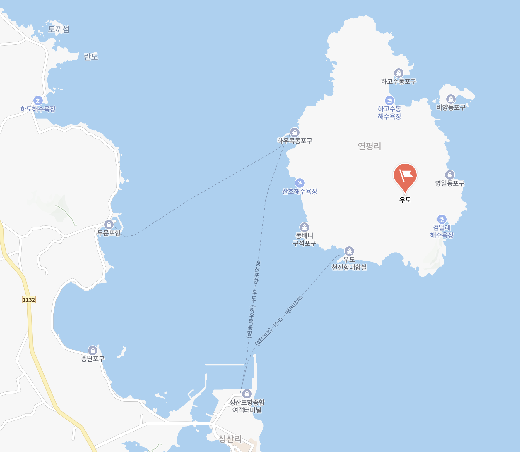 제주도 성산항 또는 종달항에서 우도로 가는 여객선이 있다.